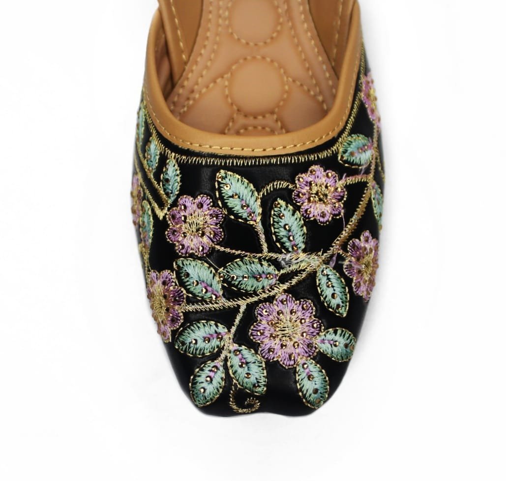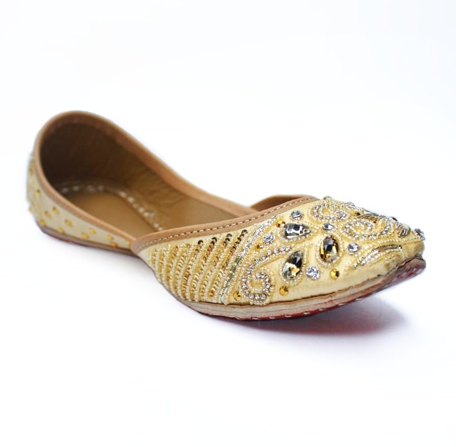 - Elegant embroidered jutti offering comfort, grip, and versatile style for weddings or daily wear.