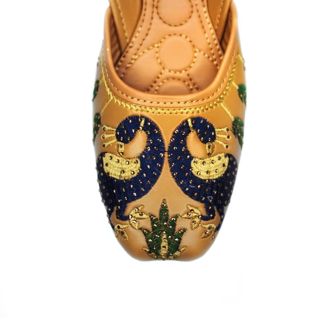 Care Instruction: Keep your juttis clean by wiping with a soft cloth, air-dry after use, avoid moisture, store in a dust bag, and use gentle leather or fabric care products to maintain shine and durability. Proudly handcrafted in India.