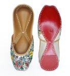 Zariqaa Handcrafted Rajasthani jutti made with pure leather, soft lining and floral embroidery. Offers stylish comfort, durable leather sole and perfect fit for ethnic, casual and festive wear.