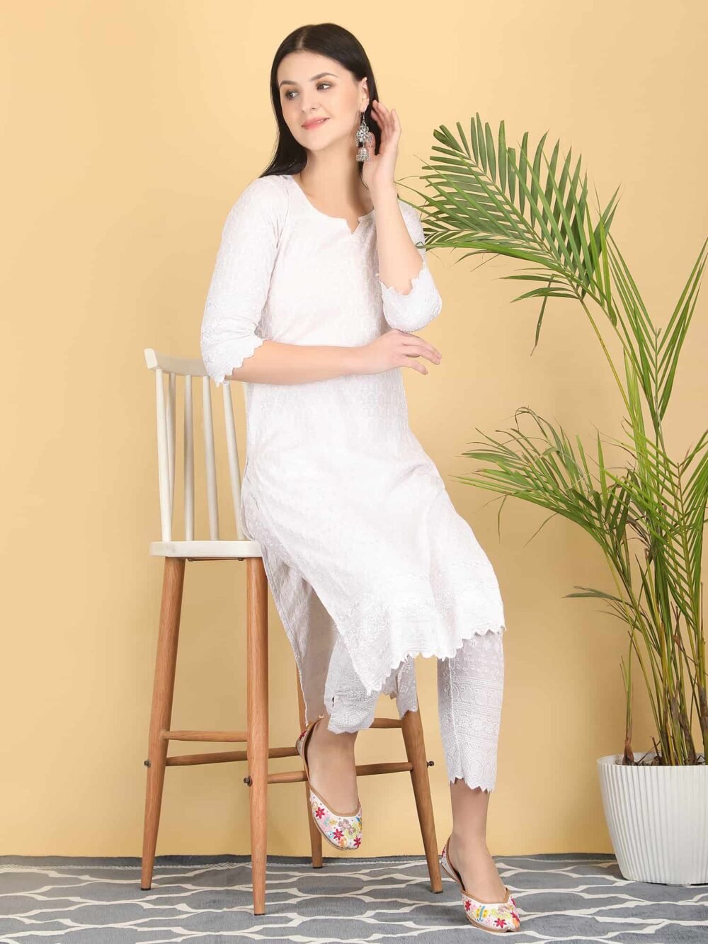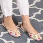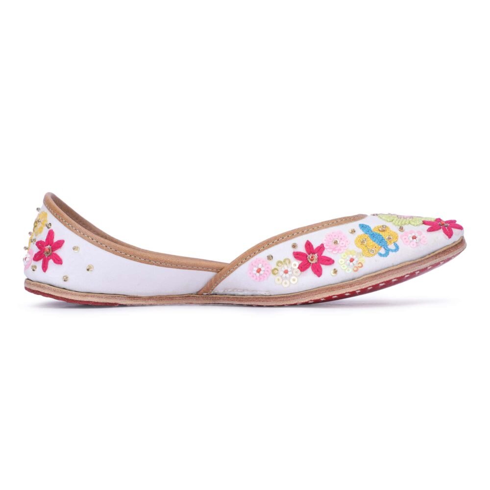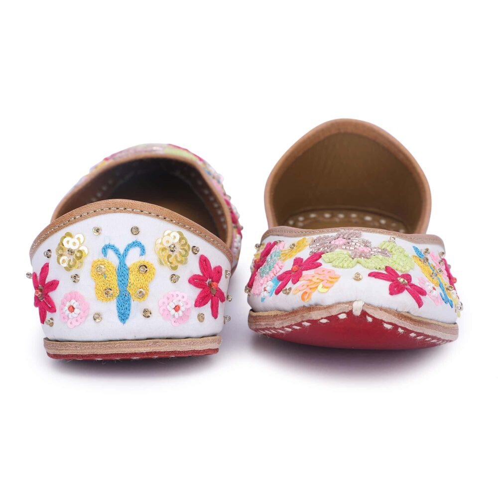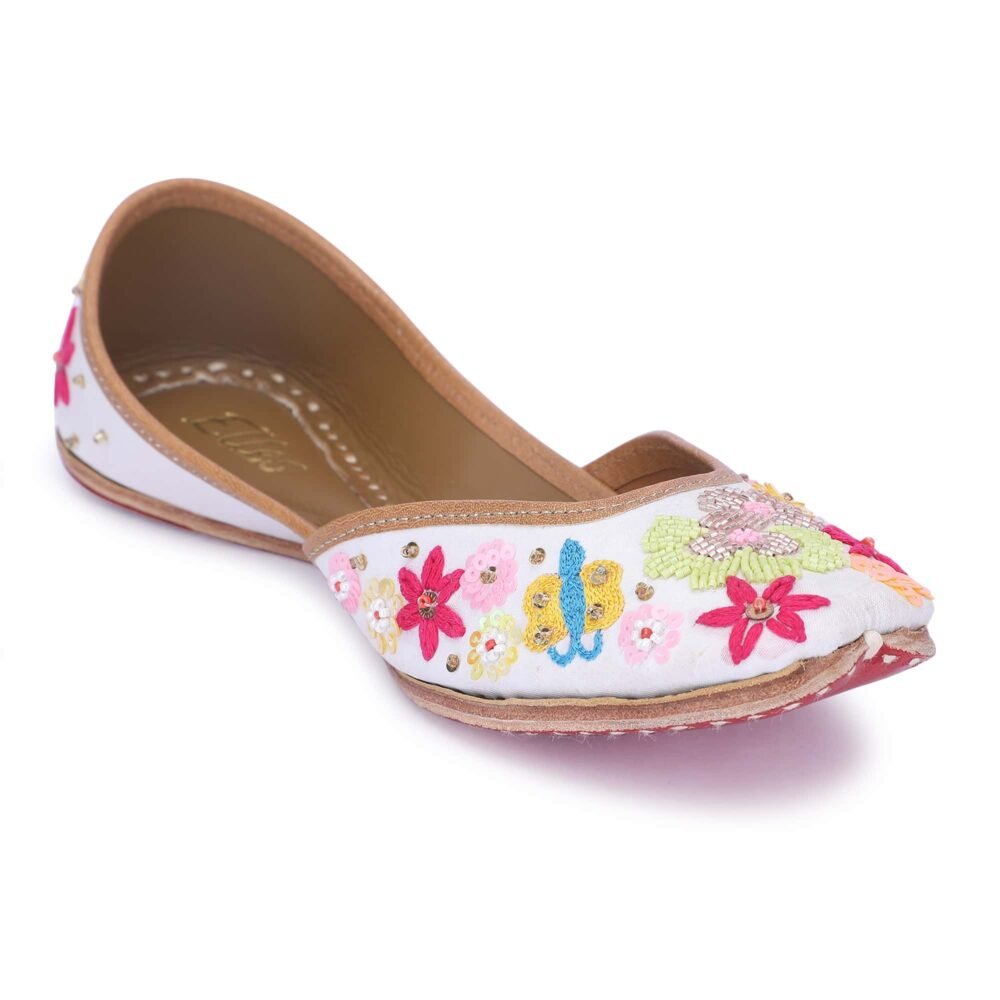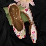 White Juttis with multi-coloured floral magnificence is beyond perfect for all your autumn-winter Indian looks.