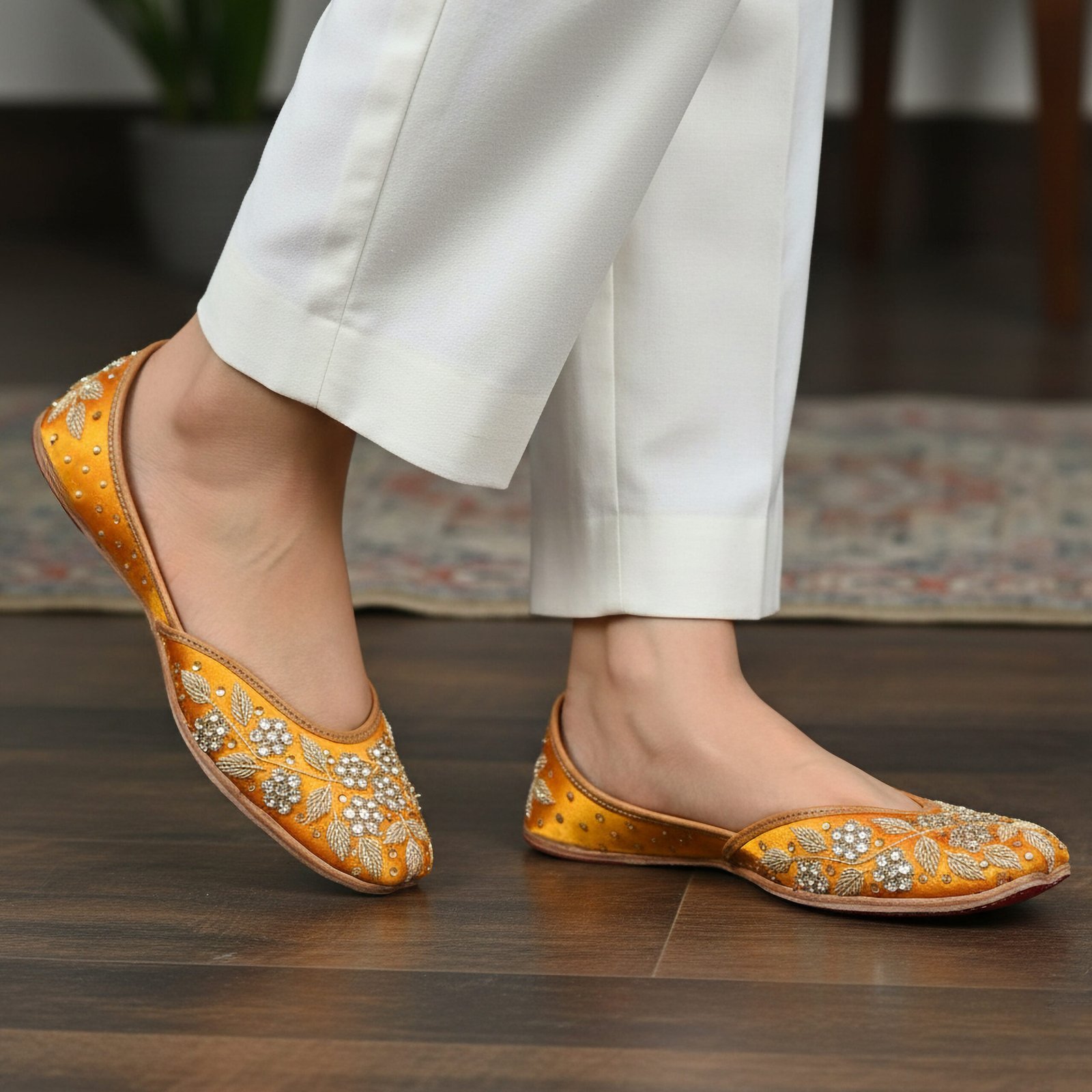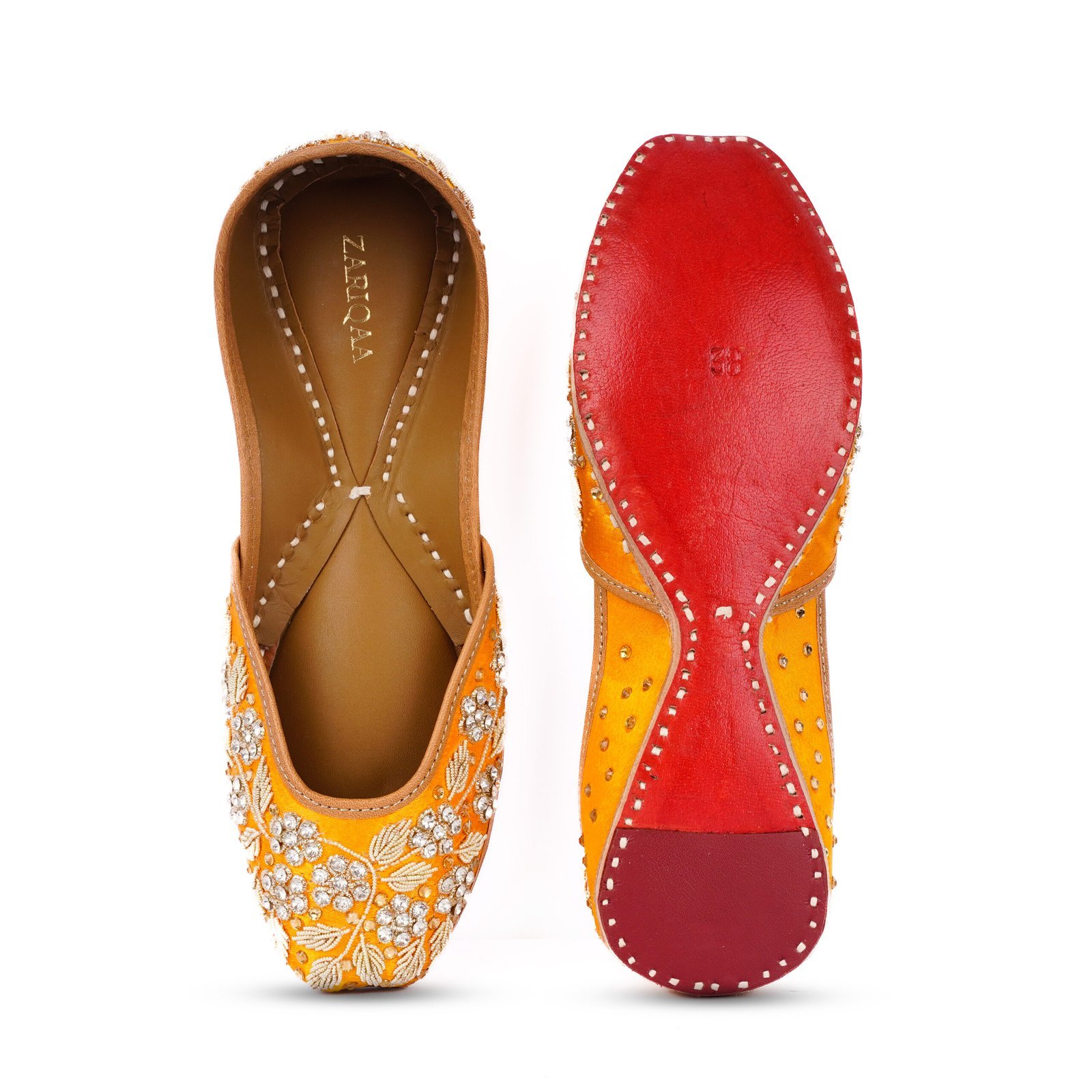 Zariqaa’s pure leather waterproof flat juttis offer a stylish match for suits, sarees, jeans, and more, making them versatile for all outfits.