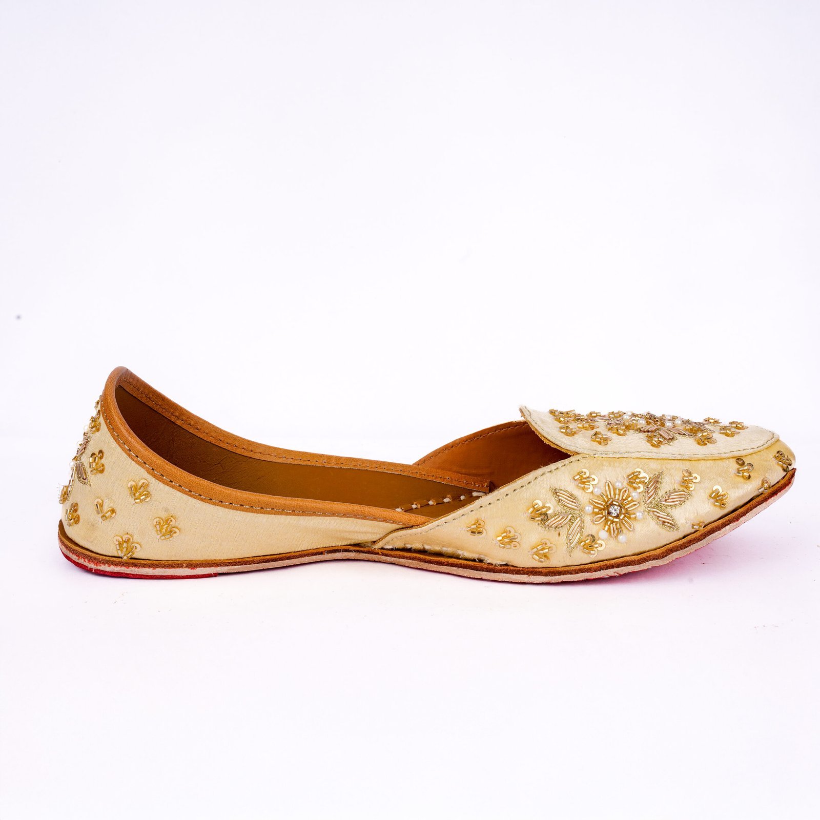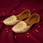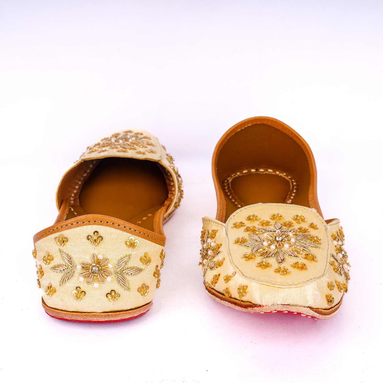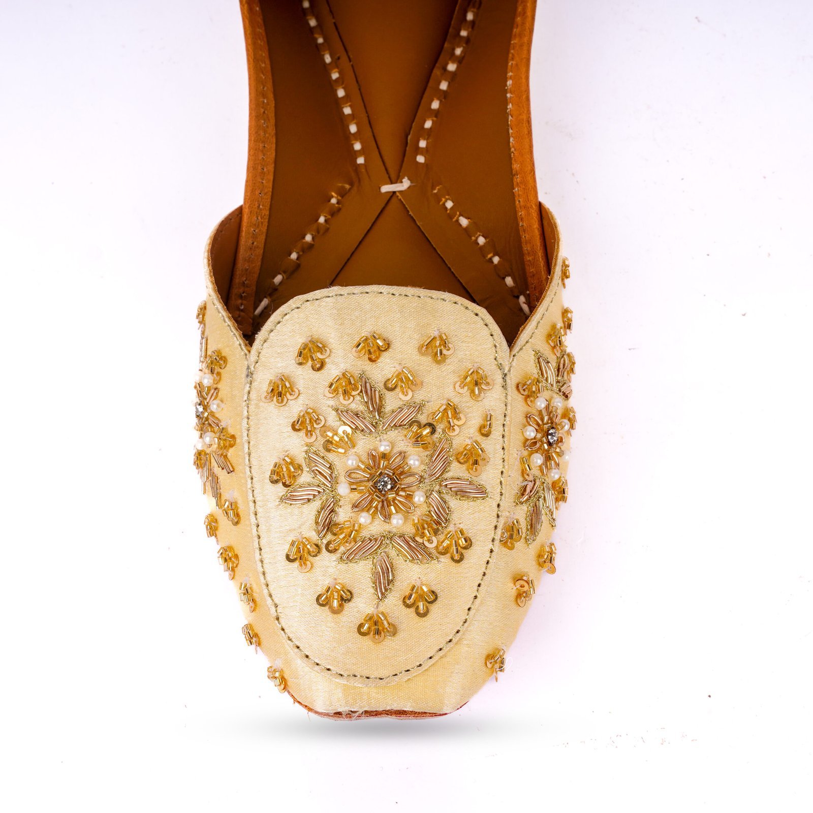Zariqaa handmade heavy sequins embroidered, white moti & golden zari loafer jutties combine ethnic elegance with modern comfort. Perfect for bridal, mehendi, haldi, or casual festive wear.