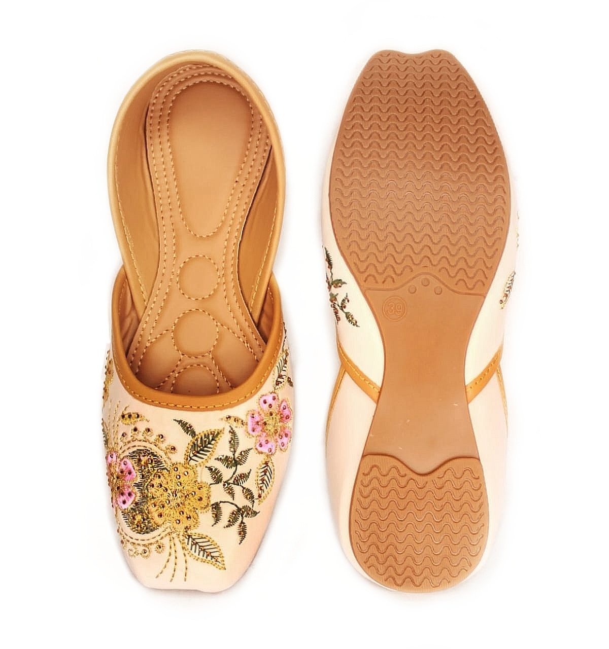 Care Instruction: Keep jutties dry and wipe gently with a soft cloth after use; avoid moisture, harsh cleaners, and prolonged sunlight to preserve embroidery and material quality. Proudly handcrafted in India.