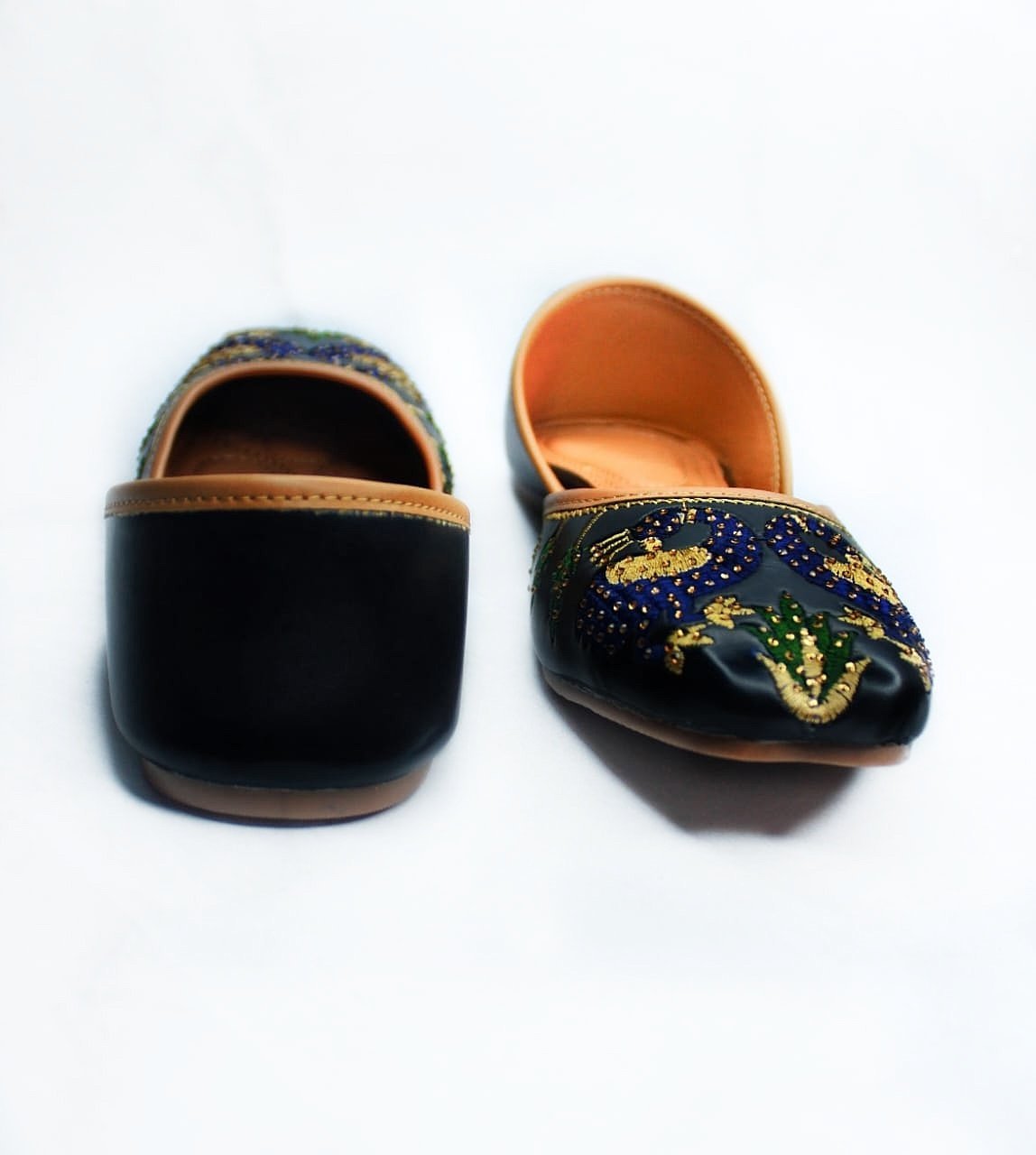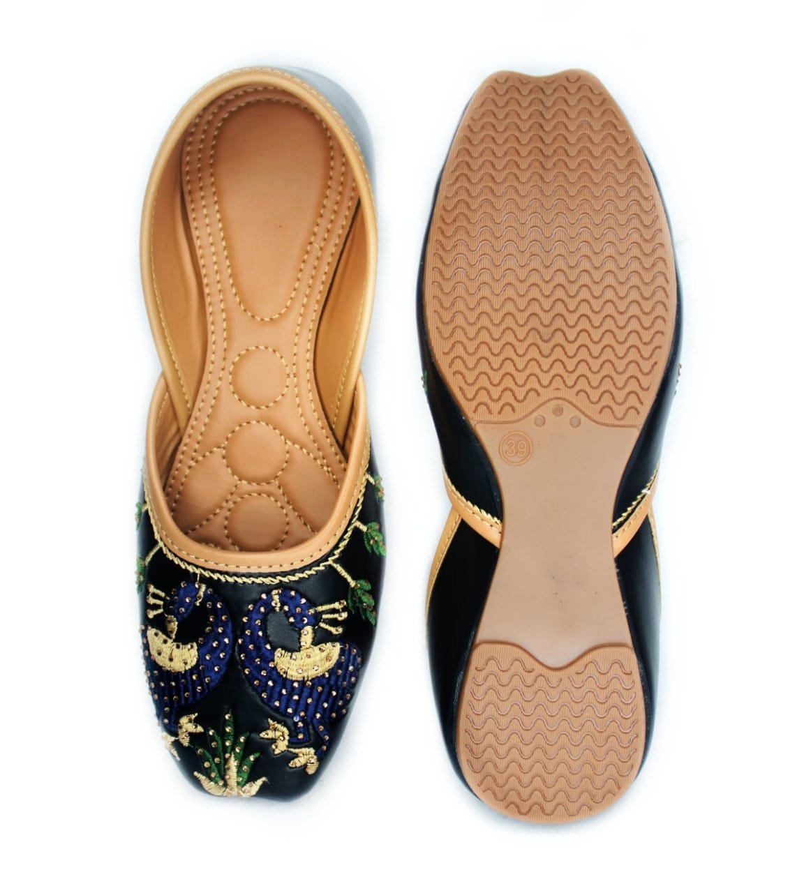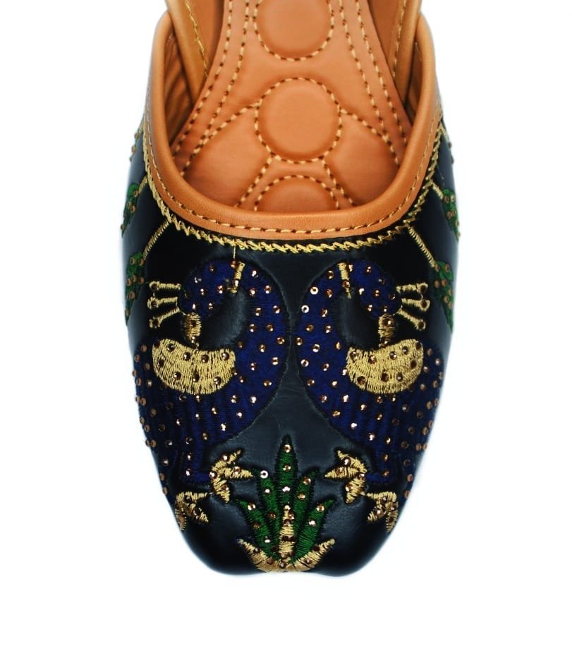 Care Instruction: Keep your juttis clean by wiping with a soft cloth, air-dry after use, avoid moisture, store in a dust bag, and use gentle leather or fabric care products to maintain shine and durability. Proudly handcrafted in India.